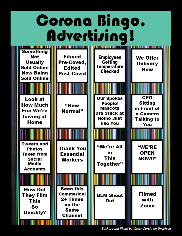 During the 2020 lockdown, I watched a lot of television and saw several advertisements, each trying to reach their audience in relatable but similar ways. Seeing how similar the overall themes and messages were I created a bingo card as a way to illustrate how common these advertisements were becoming while also finding a new way stay entertained during our ‘new normal’.